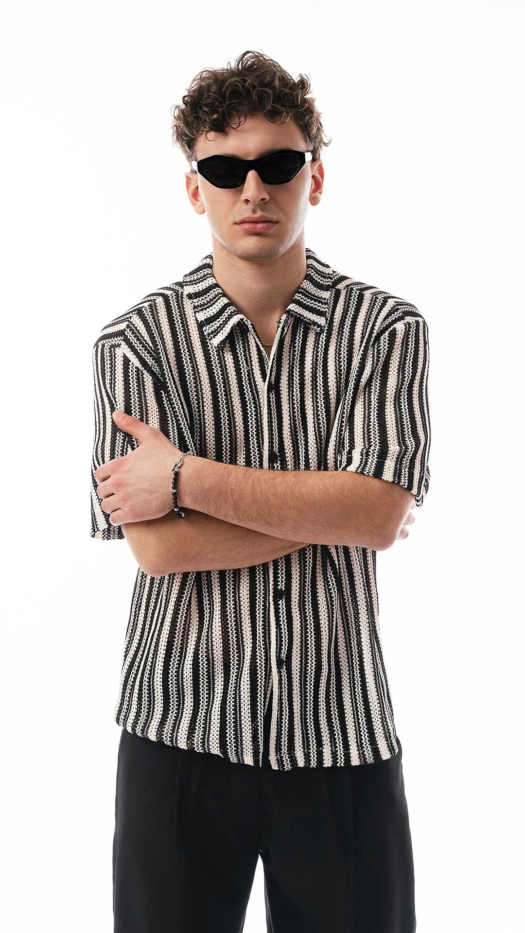 Colore écru con dettagli neri a contrasto