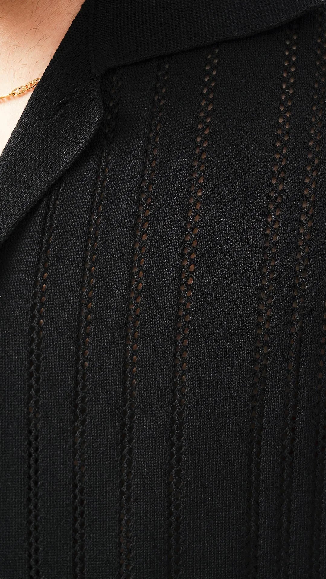 Essenziale, moderna e intrinsecamente elegante, questa camicia da uomo a mezze maniche in nero profondo è il capo ideale per chi vuole distinguersi con discrezione durante la stagione estiva. Realizzata in un pregiato tessuto traforato testurizzato, combina leggerezza e struttura, offrendo traspirabilità e stile in ogni occasione.